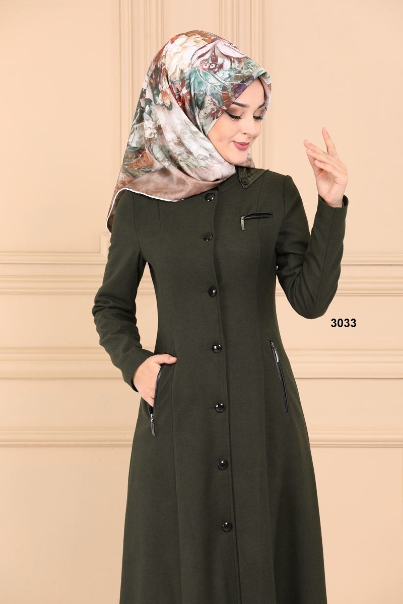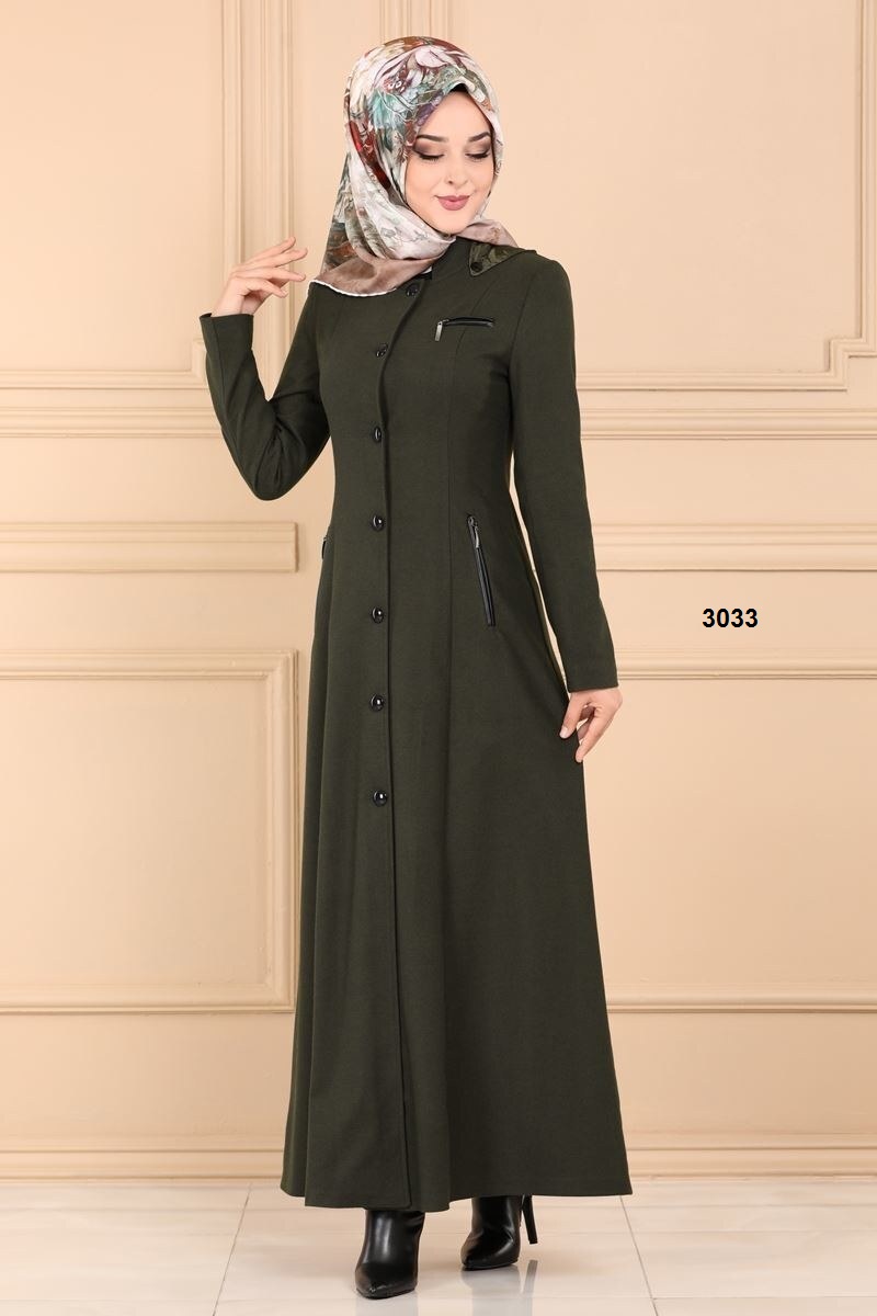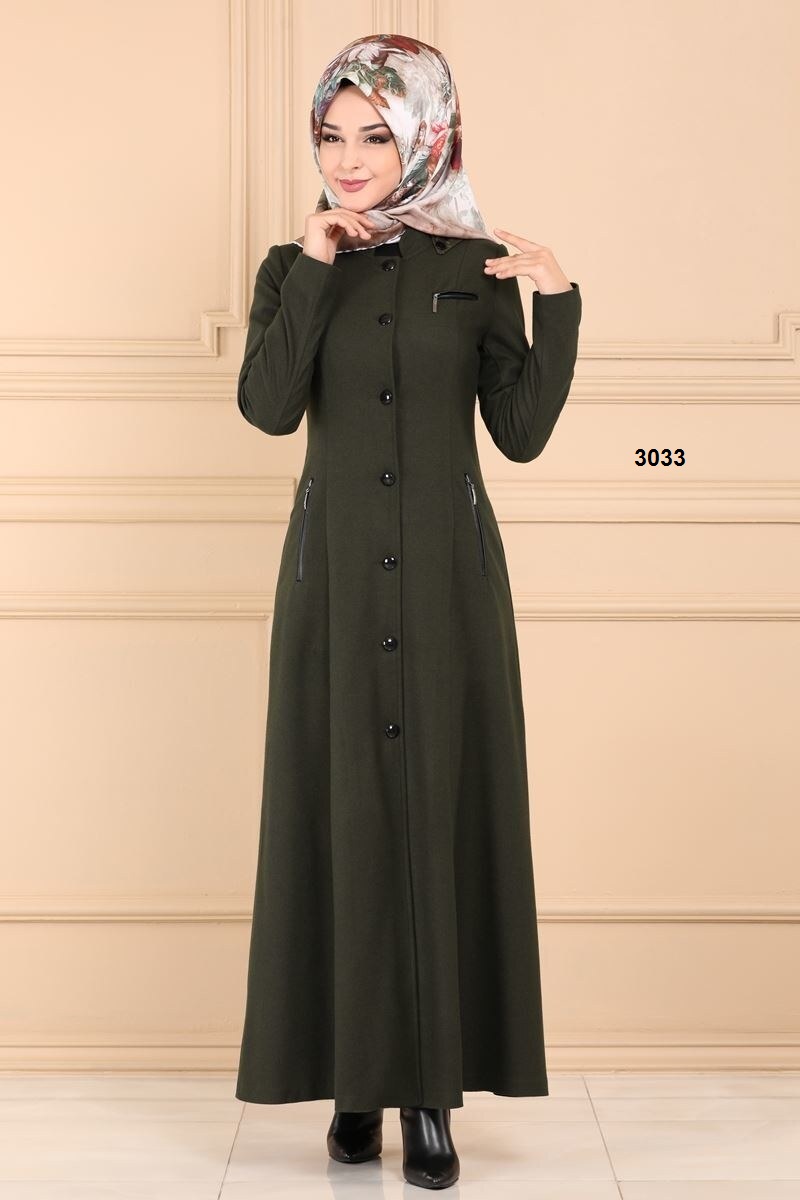 فستان جكيت 3039 زيتي